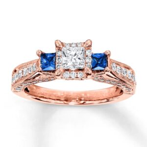 Diamond/Sapphire Engagement Ring 1 cttw Princess/Round 14K Gold